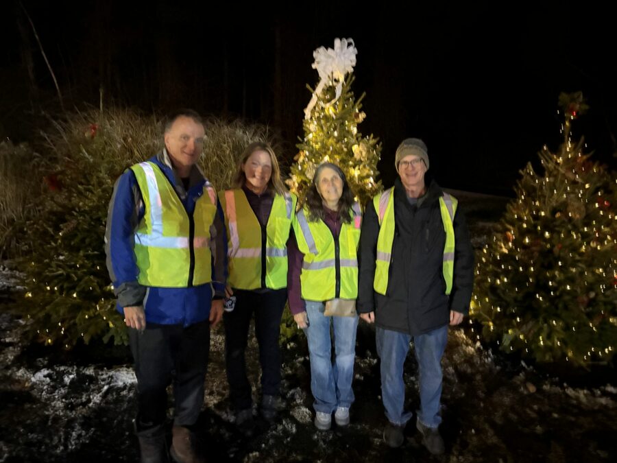 What started as a conversation about adding five artificial trees, lights and few decorations to the spot turned into the purchase of five live trees with huge root balls needing a fork lift to put in place. The trees will be planted in the park this spring to add to the health of the forested areas in the park.